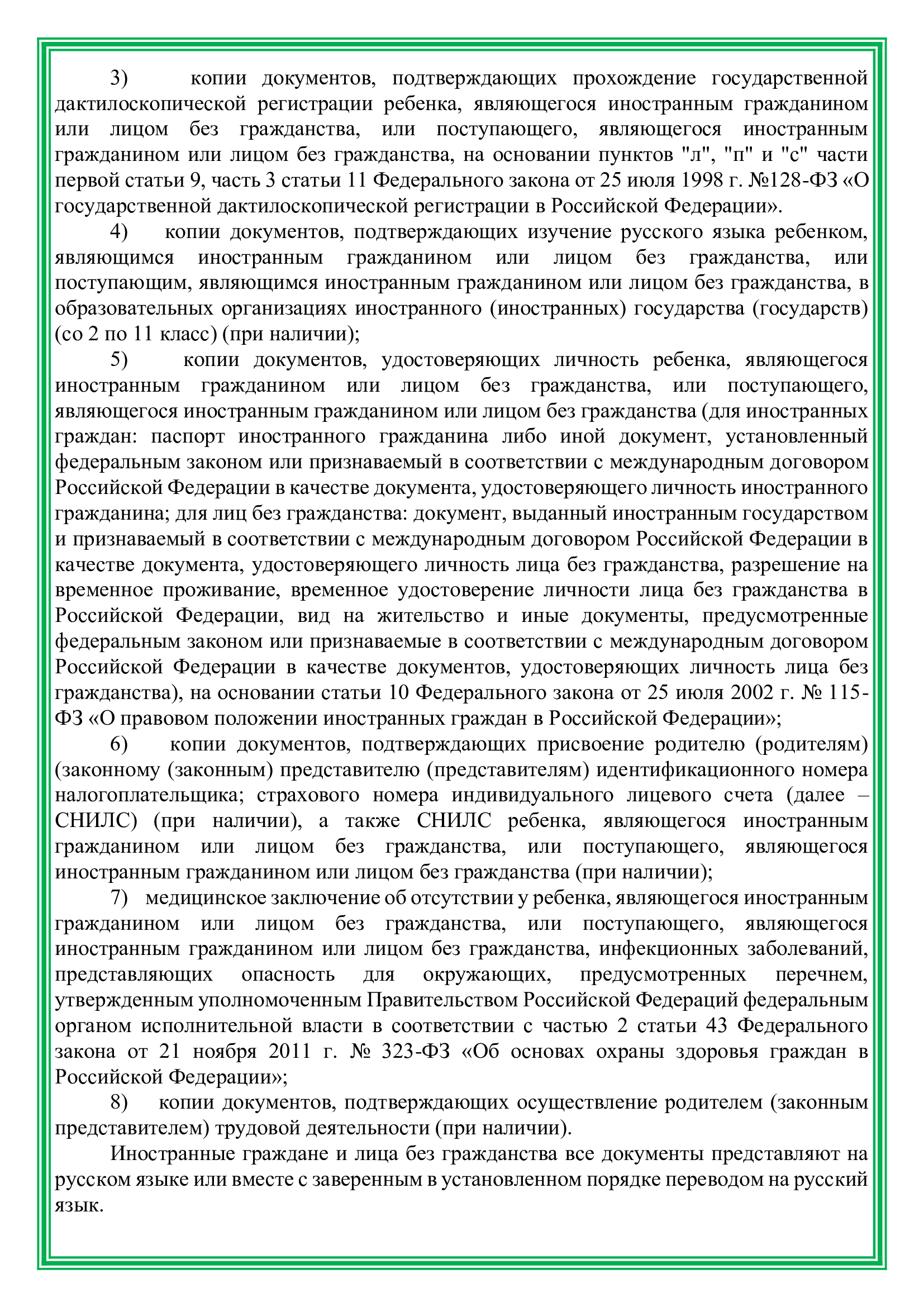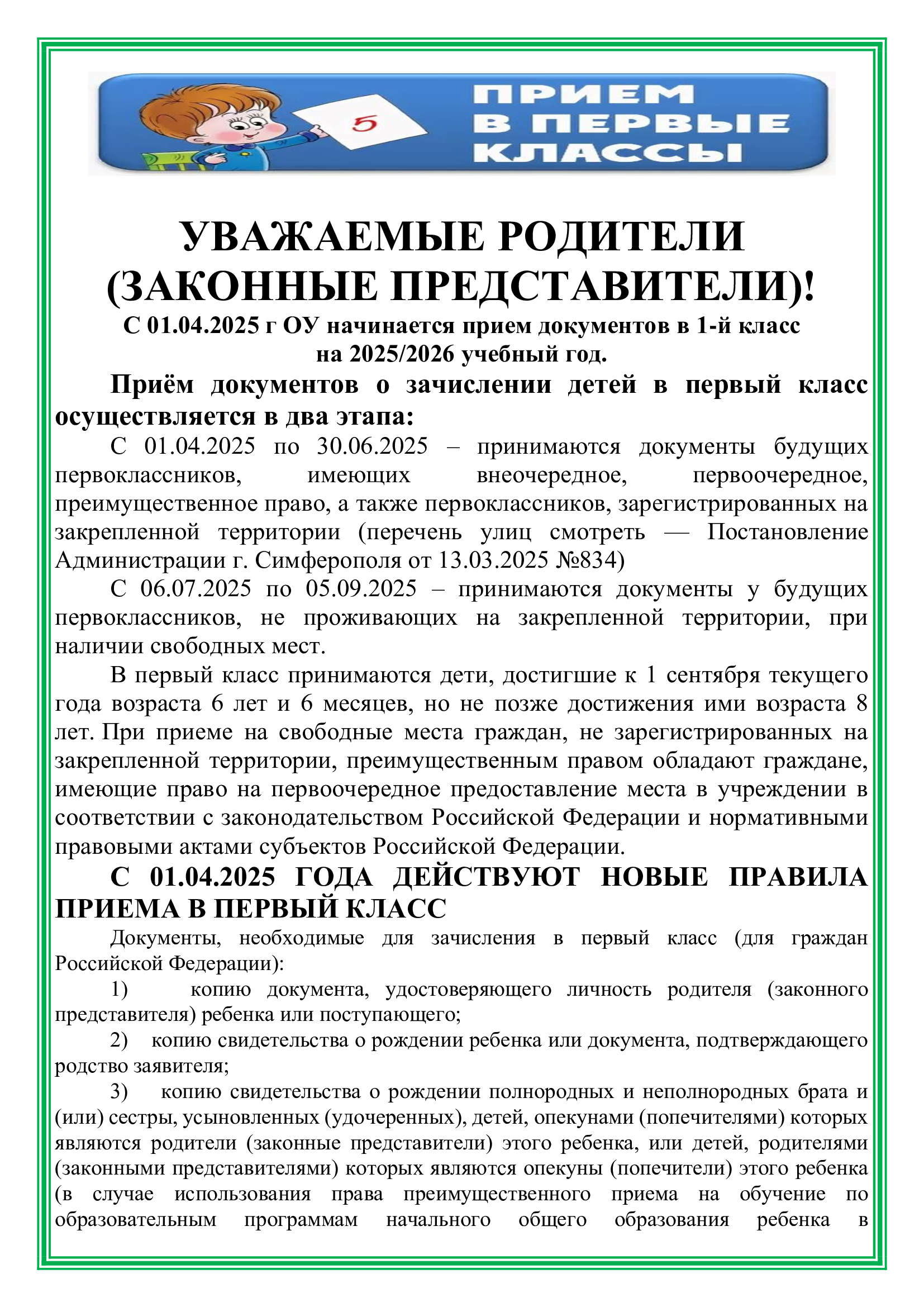 Прием ребенка в школу осуществляется в соответствии с Федеральным законом "Об образовании в Российской Федерации" №273 ФЗ, а также другими